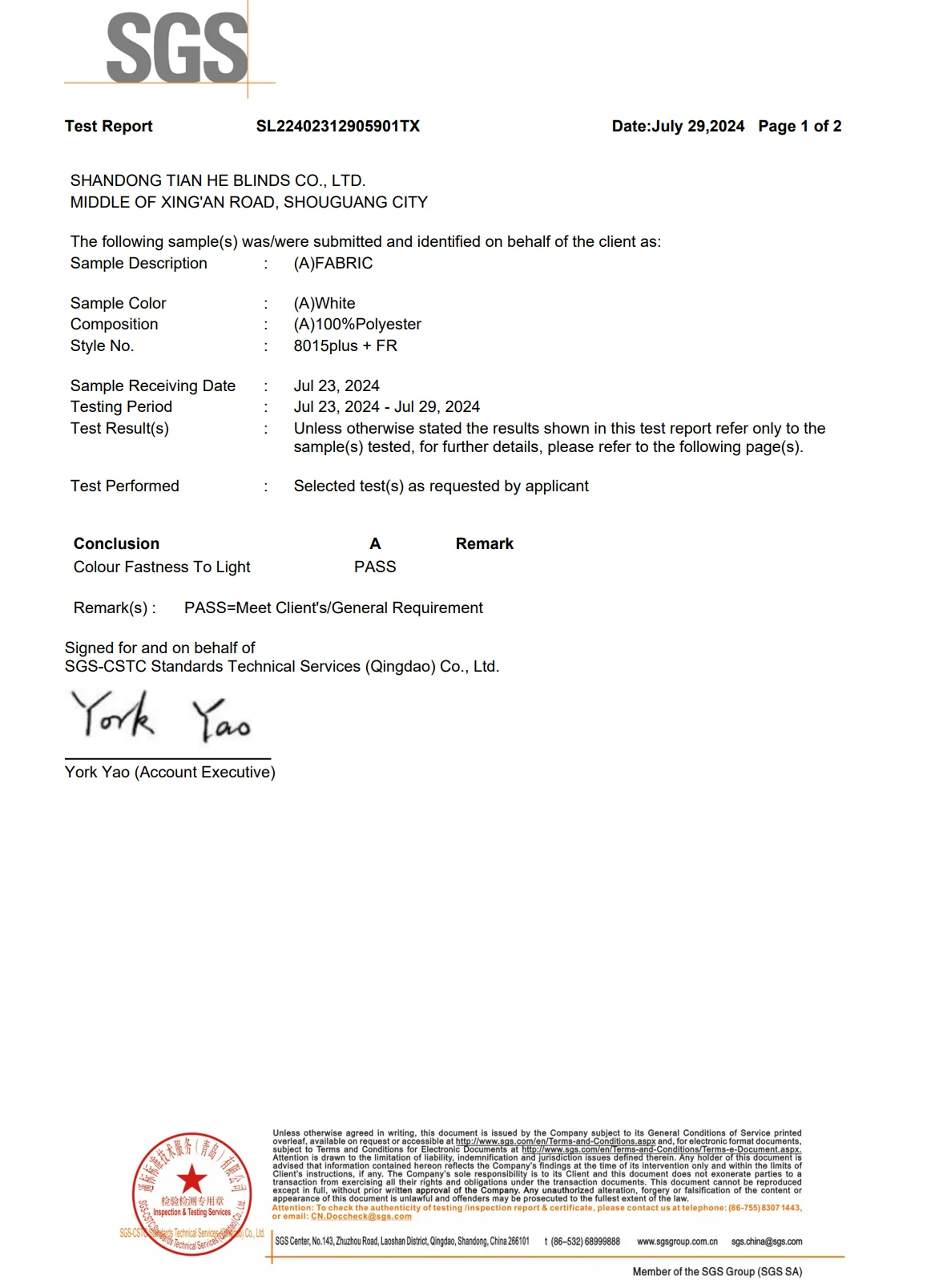Shouguang Tianhe Blinds Co., Ltd.